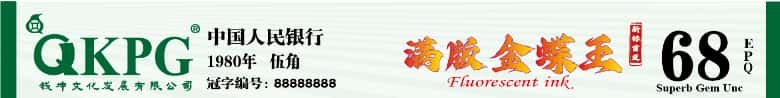而满版中国红也有荧光强弱之分。在111个中国红冠号之中,筛选出一个中间国徽整体金粉荧光饱满刺眼强烈、六个长方形荧光强烈、背面中国人民银行拼音字母条框荧光强烈、国徽左右四条幸运柱图案金粉强烈、国徽上下爱心图形金粉强烈、重点左右两边大耳朵如金龙腾空盘旋荧光金线条立体感强烈、小耳朵百年好合形似金丝线缠绕强烈——七大强荧光区域一体化综合强烈。这种顶级满版中国红是收藏界一直追寻的,是目前满版中国红荧光币已知流水的领军代表作。本次开标为了区分以前至尊满版没有细分化而开标。