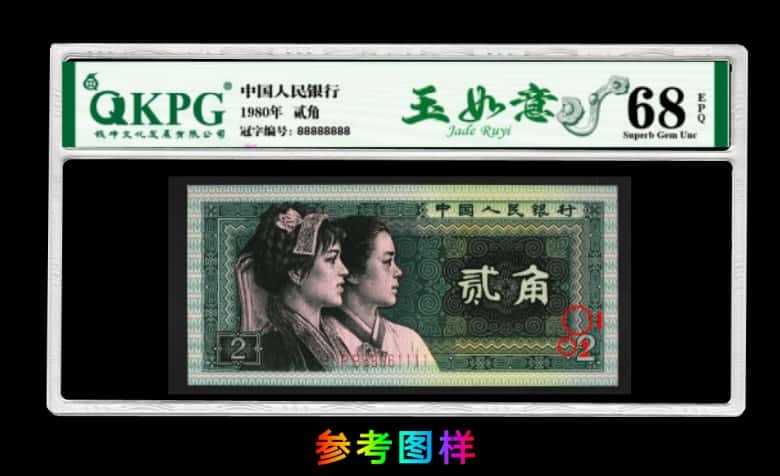 标签样板 申请纸币版本:四版贰角(8002) 申请版本名称:【玉如意】(暗记版本) 冠号参考信息: FX、FY、FZ、PA、PB、PC、PD、PE、 PF、PG、PH、QG、QH、QI、QJ、SA、TA、PK、PL、PM、PN、PO、UM、UN、UO、XK、XL。 形…